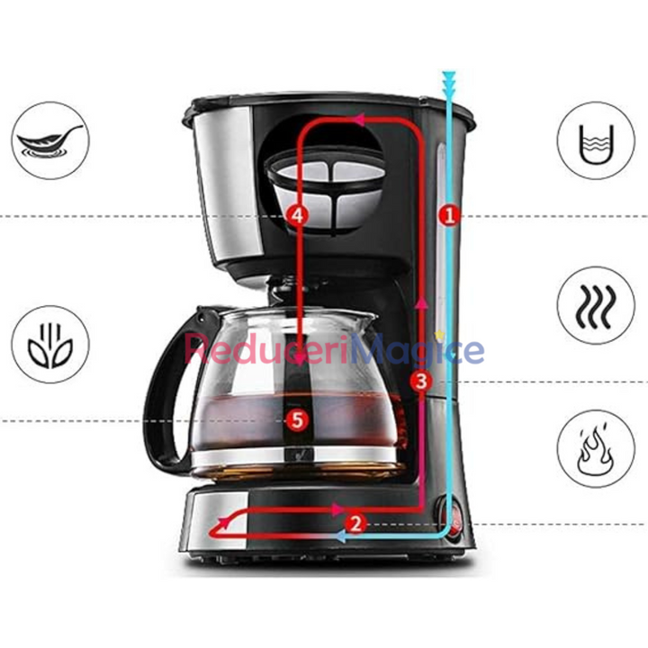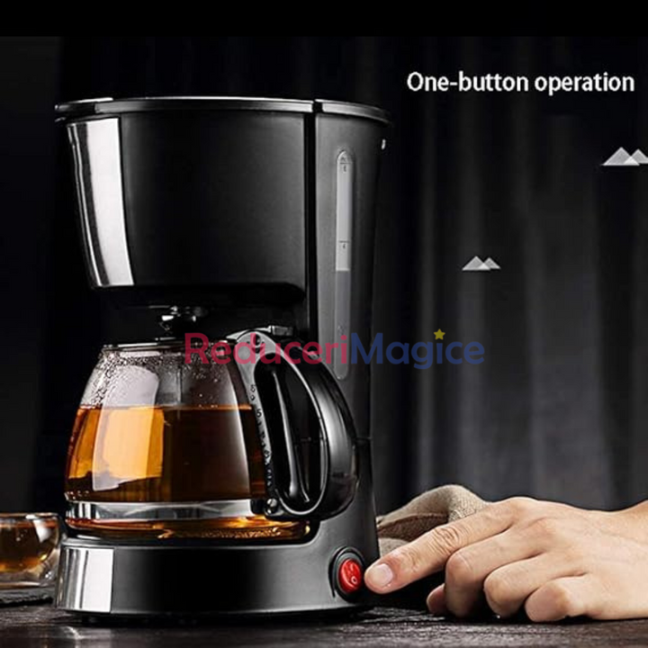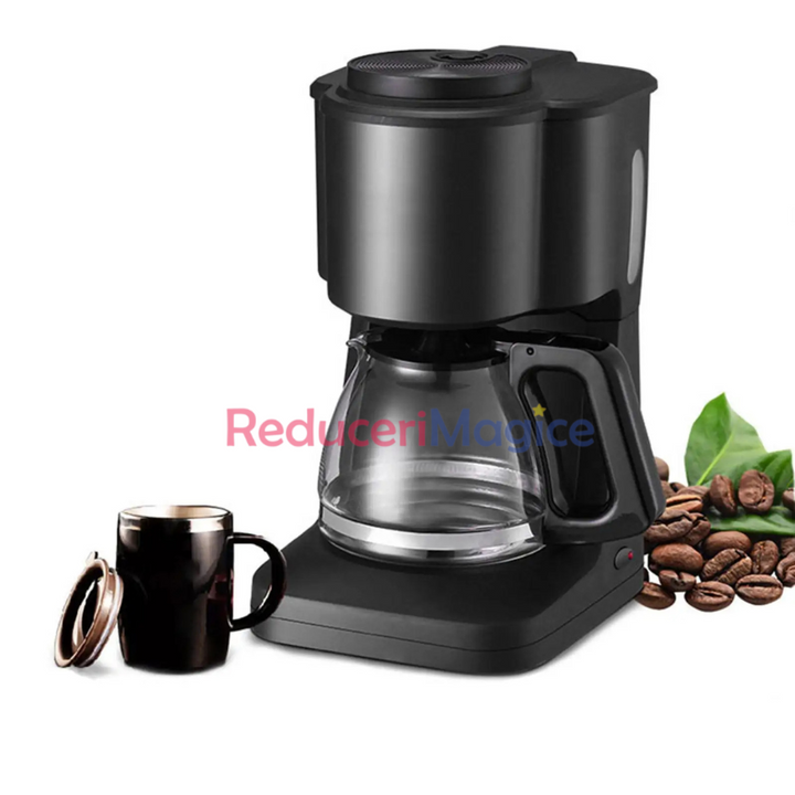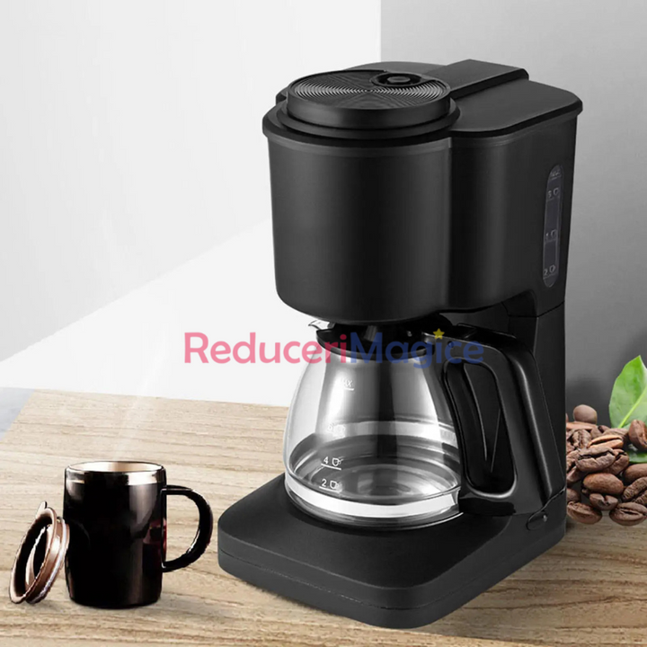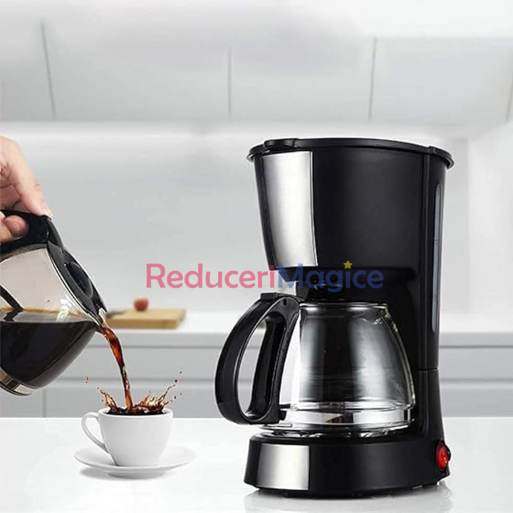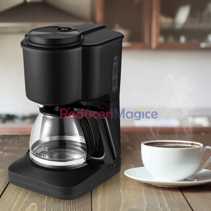 Cafea proaspătă - Acest aparat de cafea cu filtru solid, de culoare neagră clasică, are o capacitate de 1,25 litri și vă oferă până la 10 căni de cafea din plin.