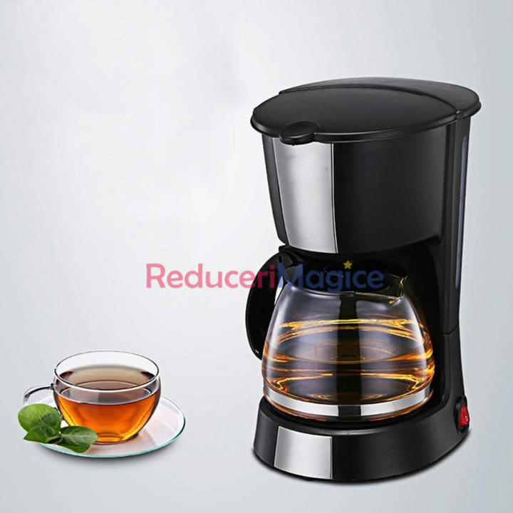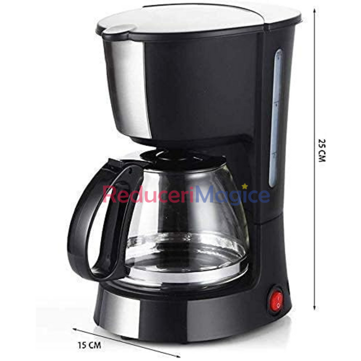 Aparat de cafea,negru, ulcior de sticla, 10 cesti cafea cu filtru, 650ML, 750 wati, placa de incalzire, oprire automata, functie anti-picurare