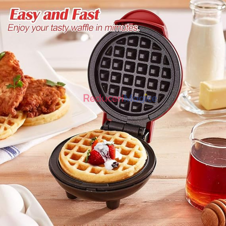 Design compact și portabil – Ideal pentru bucătării mici, birouri sau călătorii, mini aparatul de vafe ocupă puțin spațiu și este ușor de transportat.