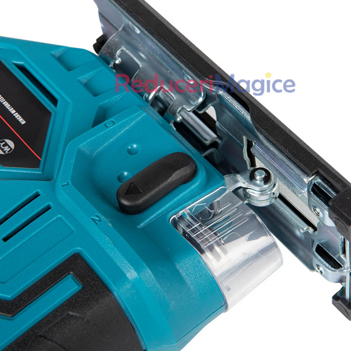 Funcție pendulară ajustabilă: Această funcție oferă posibilitatea de a selecta modul de tăiere pentru diferite tipuri de lemn, de la tăieturi fine până la tăieturi rapide, prin ajustarea amplitudinii mișcării pendulare.