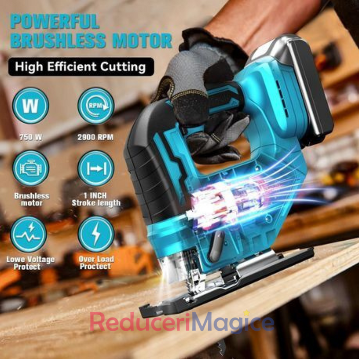 Design compact și portabil: Ușor și ergonomic, fierăstrăul este confortabil de utilizat pentru perioade îndelungate și permite mobilitate deplină, ideal pentru lucrări în spații restrânse sau pentru proiecte în aer liber.