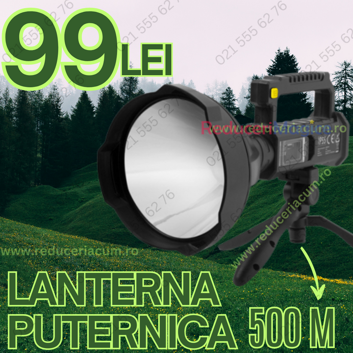 Lanterna de mana 25000 W, trepied, 4 moduri iluminare, Lumina 500 M