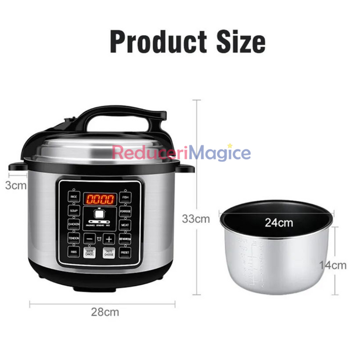 Oala sub presiune electrică LEIHMANN de 6 litri este soluția ideală pentru gătit rapid și eficient. Cu o putere de 1050W și 25 de programe automate, acest aparat multifuncțional oferă versatilitate și comoditate în bucătărie.