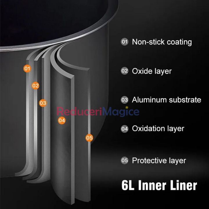- Capacitate de 6L – Potrivită pentru familii și preparate în cantități mai mari.