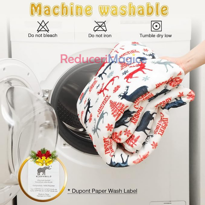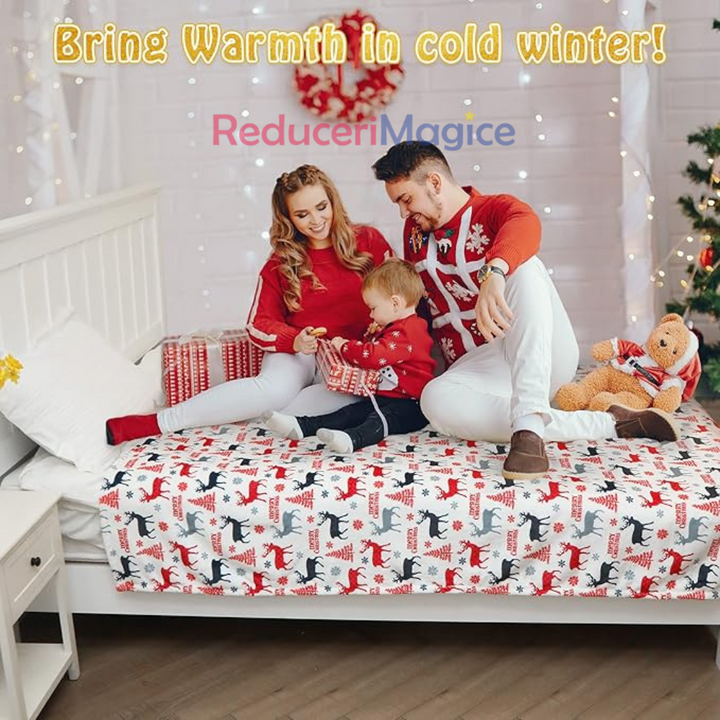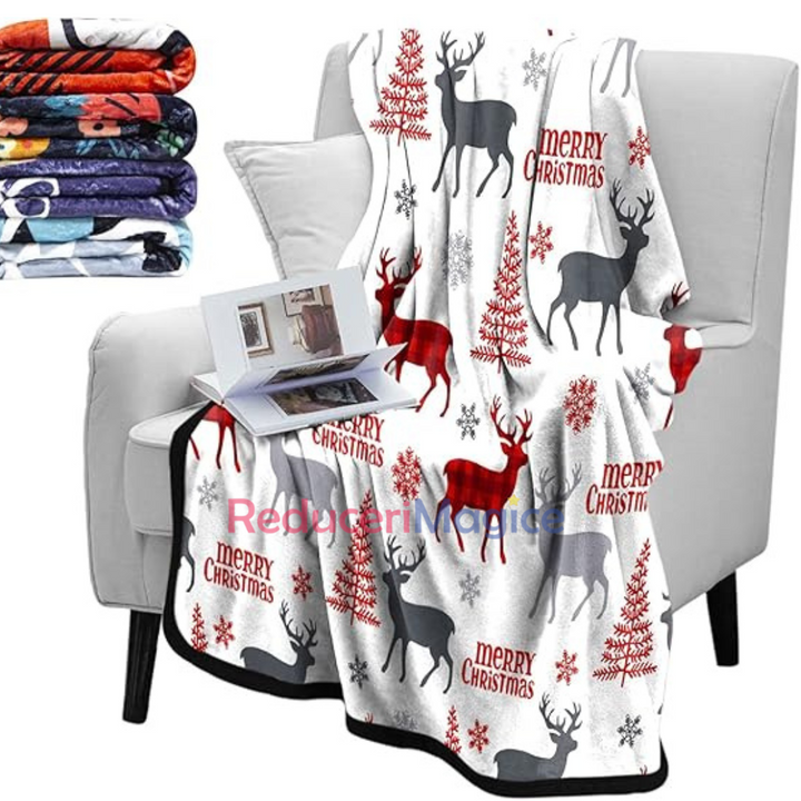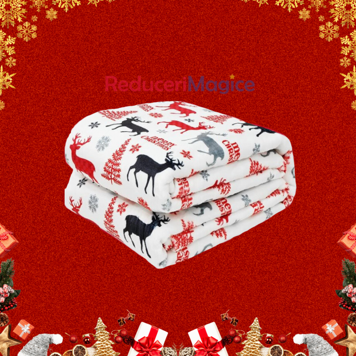 Pătura Soft Touch cu Modele de Crăciun – Confort și Eleganță pentru Sărbători