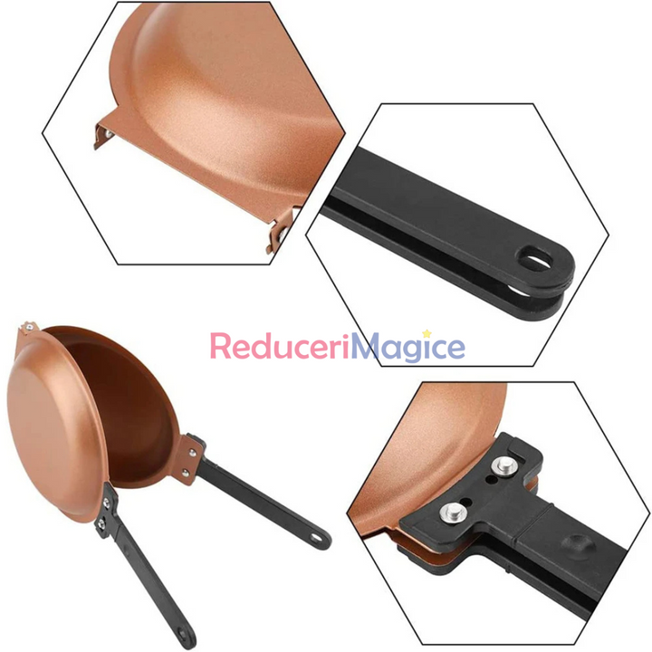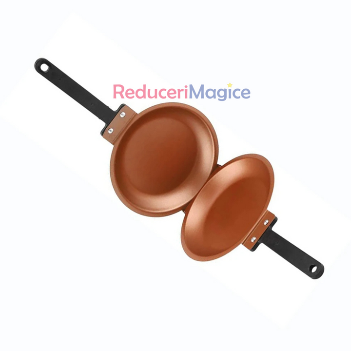 Tigaie dubla pentru clatite, antiaderenta, manere reci, crem, 35x20x5 cm
