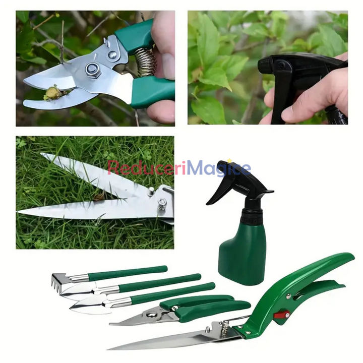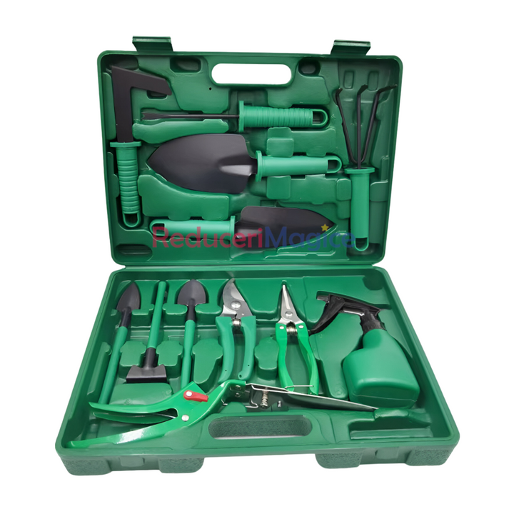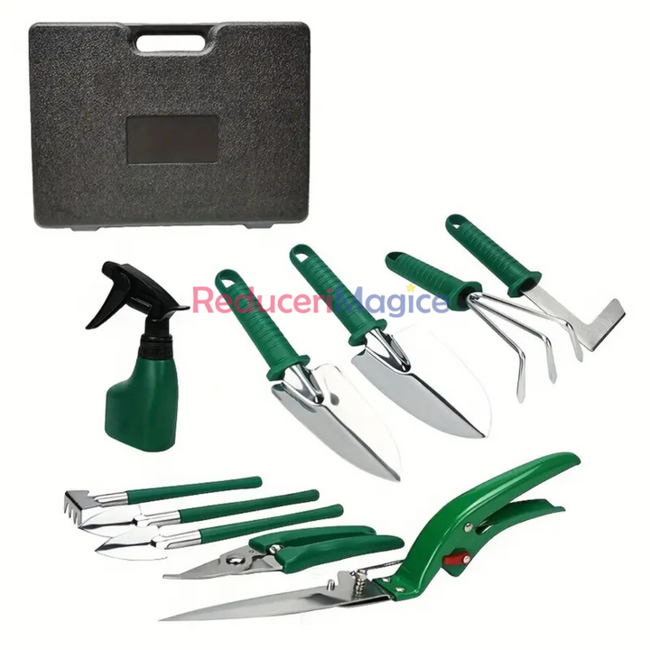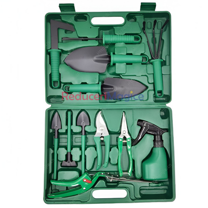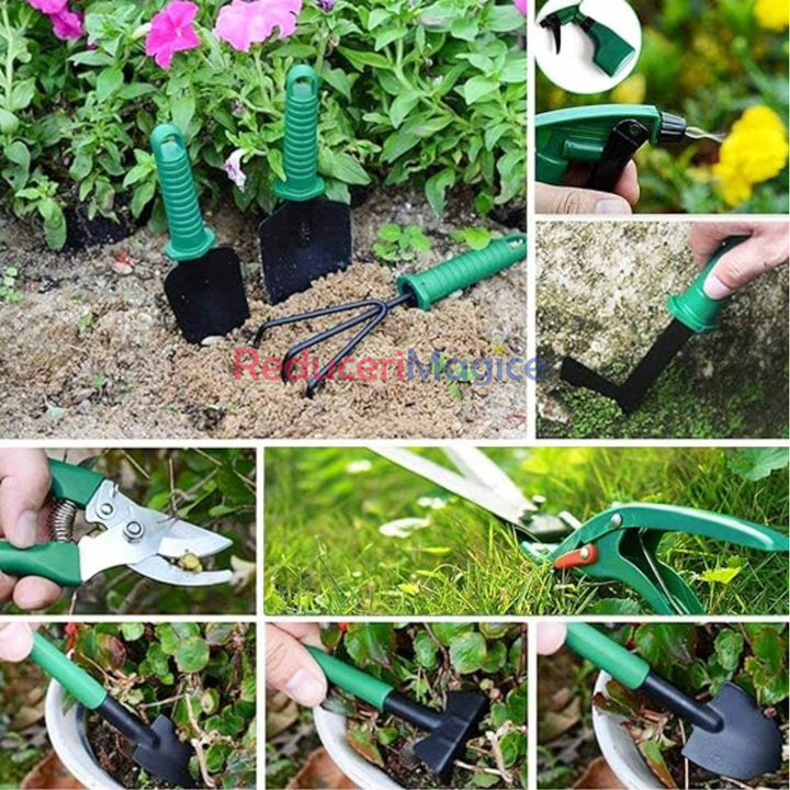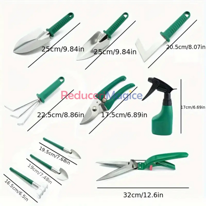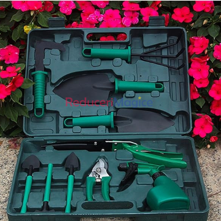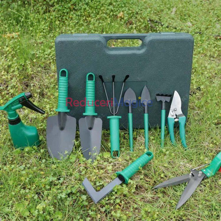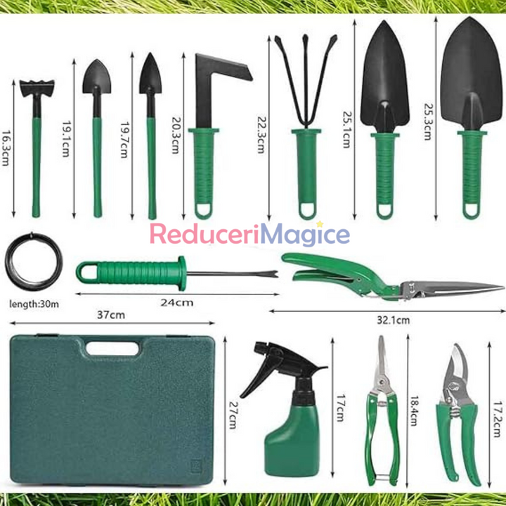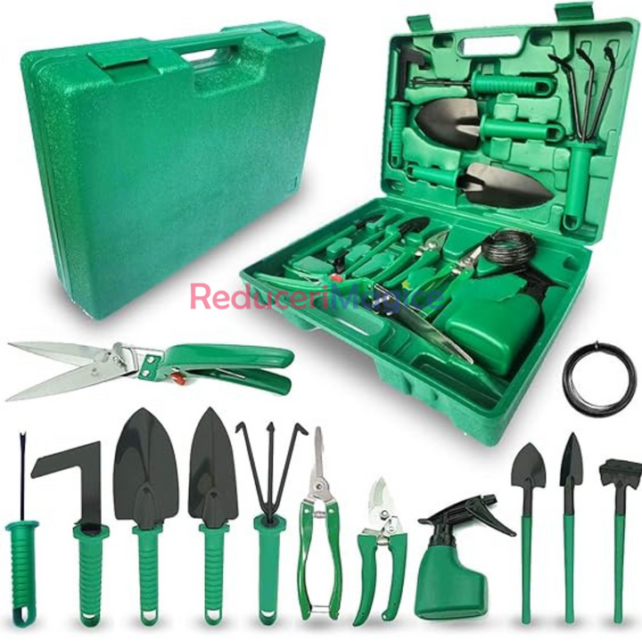 - Unelte Versatile: Acest set include o varietate de unelte adaptate pentru diferite sarcini de grădinărit, de la săpat și plantat până la curățarea și tăierea plantelor.